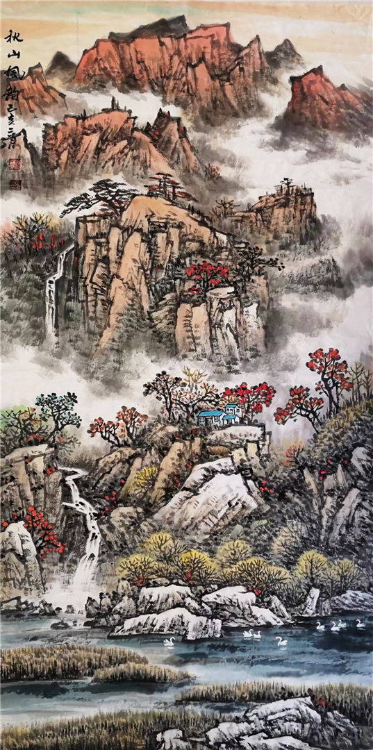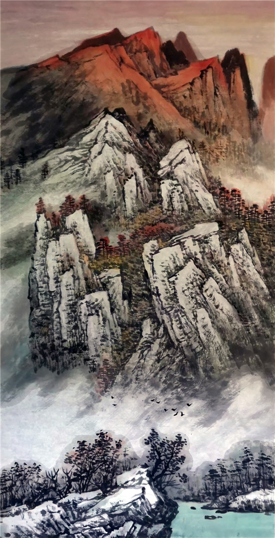 杨文金,男,河北唐山人,八八年毕业于河北师大美术系,受教于白云乡,李维世,张义春等等老师,扎实的绘画功底为山水画创作打下了坚实基础,2019年参加著名画家师恩钊北派山水高研班取的优异成绩,